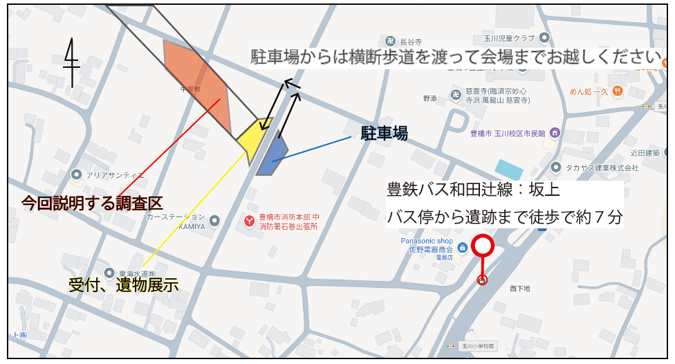 これら調査成果についての説明会を発掘調査現場にて開催します。