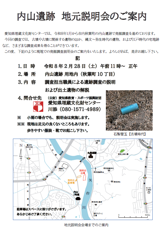 問い合わせ先 愛知県埋蔵文化財センター 調査課(tel.0567-67-4163)