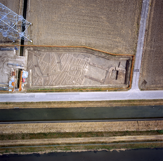 大雑把ですが、橋から約50m南側で方形周溝墓や一辺が約40mの方墳(あるいは前方後方墳)の周溝が検出され、橋の周辺と北側では竪穴建物を多数検出しています。やはりこの橋も、集落の中でも比較的高い地点に架かっているのです。