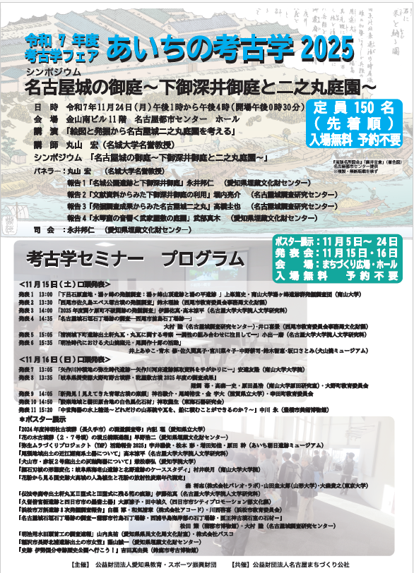【主 催】公益財団法人愛知県教育・スポーツ振興財団 愛知県埋蔵文化財センター