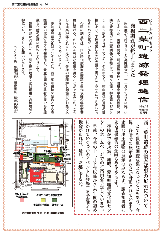 西二葉町遺跡発掘通信 No.14を公開